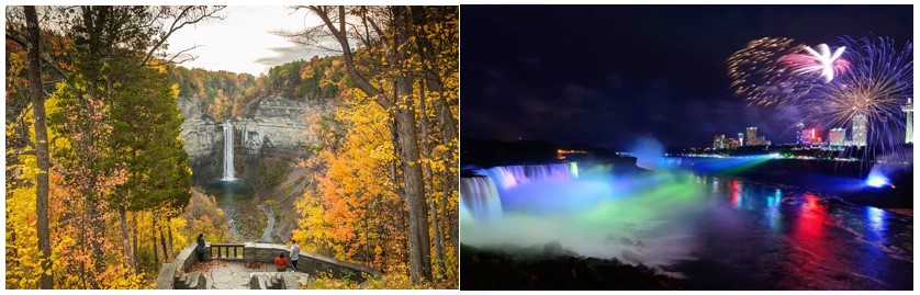 - Tour đêm thác Niagara: Quý khách sẽ tận hưởng một số cảnh quan đầy cảm hứng và trải nghiệm đầy phiêu lưu trong chuyến tham quan đêm tại thác Niagara. Thác Niagara là hệ thống ba thác và là công viên tiểu bang lâu đời nhất ở Hoa Kỳ (Quý khách sẽ có cơ hội tận hưởng màn trình diễn pháo hoa đặc sắc tại thác – trừ những ngày không có pháo hoa)