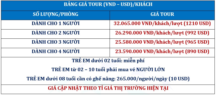 - Quý Khách vui lòng tham khảo kỹ các Điều Kiện trước khi đăng ký chuyến du lịch.
