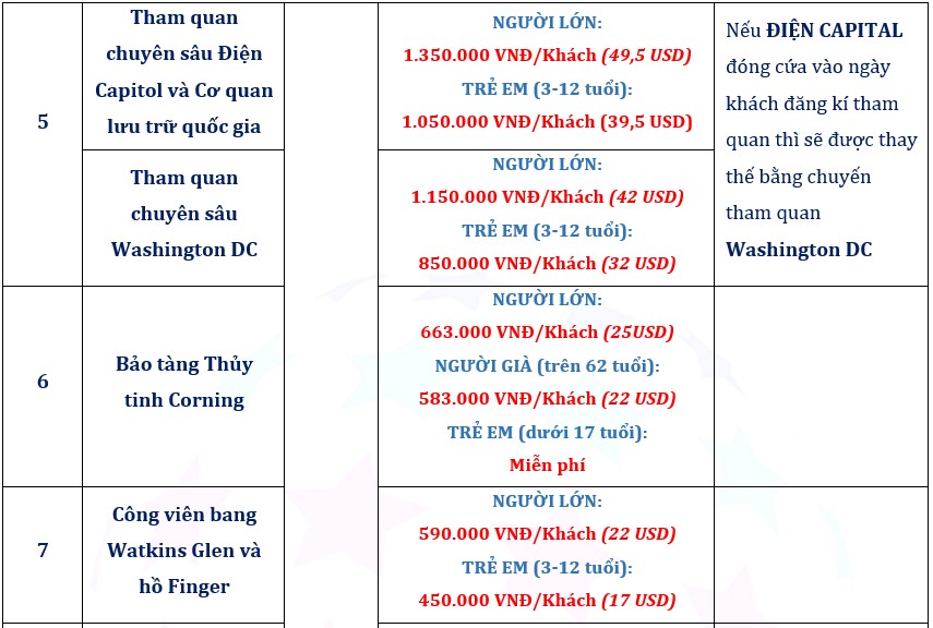 LƯU Ý: Nếu không thể vào Điện Capitol Hoa Kỳ, Quý khách sẽ được thay thế bằng điểm tham quan “Tour chuyên sâu về Washington DC”