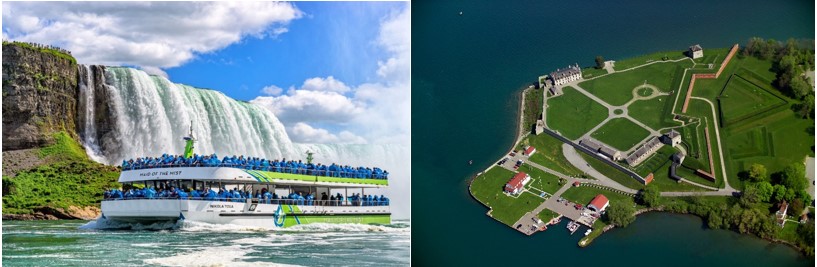 - (a) Maid of the Mist đi vào lòng thác Niaraga: Để chiêm ngưỡng sự hùng vĩ của thác Niagara, Quý khách có thể trải nghiệm trên chuyến tham quan bằng thuyền đến Thác nước, đưa bạn đến gần thác Niagara nhất có thể, chiêm ngưỡng hình ảnh của thác Niagara theo cách hoàn hảo nhất.