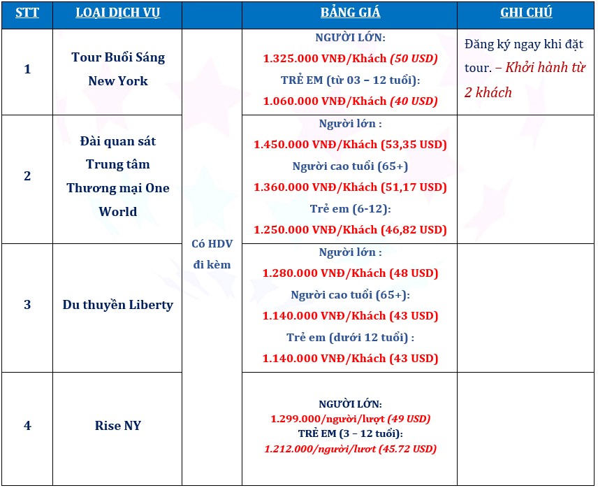 NGÀY 02: THÀNH PHỐ NEW YORKLưu ý về địa điểm: