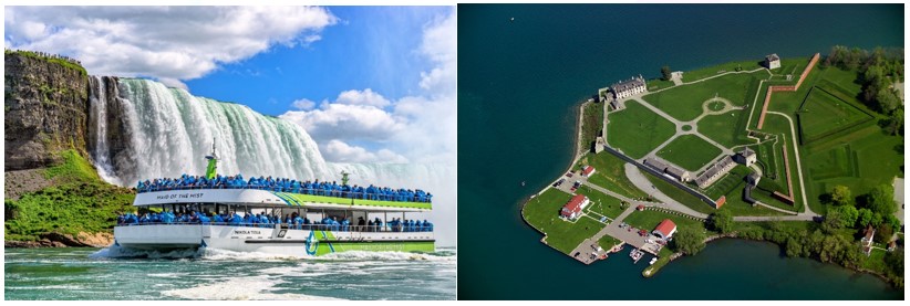- (a) Maid of the Mist đi vào lòng thác Niaraga: Để chiêm ngưỡng sự hùng vĩ của thác Niagara, Quý khách có thể trải nghiệm trên chuyến tham quan bằng thuyền đến Thác nước, đưa bạn đến gần thác Niagara nhất có thể, chiêm ngưỡng hình ảnh của thác Niagara theo cách hoàn hảo nhất.