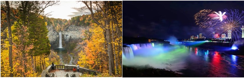 - Tour đêm thác Niagara: Quý khách sẽ tận hưởng một số cảnh quan đầy cảm hứng và trải nghiệm đầy phiêu lưu trong chuyến tham quan đêm tại thác Niagara. Thác Niagara là hệ thống ba thác và là công viên tiểu bang lâu đời nhất ở Hoa Kỳ (Quý khách sẽ có cơ hội tận hưởng màn trình diễn pháo hoa đặc sắc tại thác – trừ những ngày không có pháo hoa)