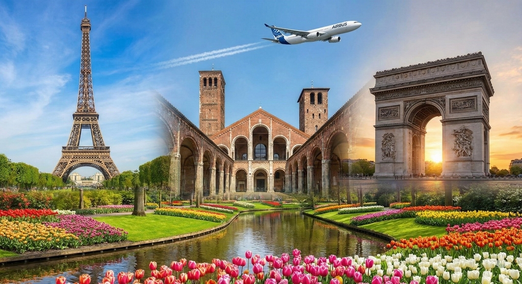 - Chiêm ngưỡng Tháp Eiffel, Khải Hoàn Môn và Đại lộ Champs-Élysées.