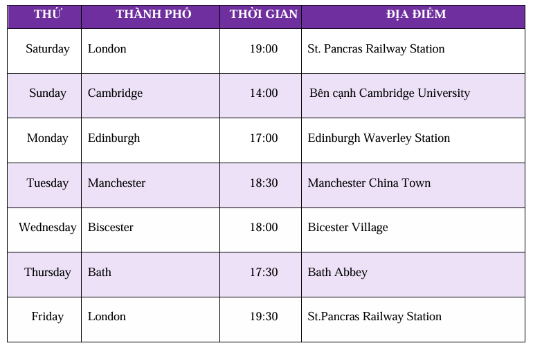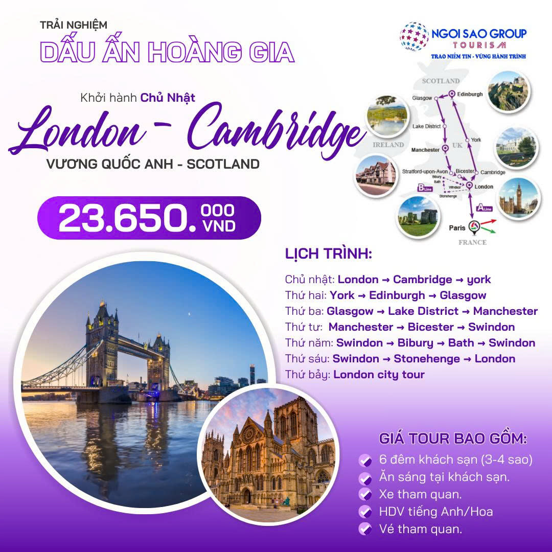 KHỞI HÀNH : Thứ Bảy hàng tuần tại London, (từ 4/1-5/4/2025, 28/9-31/12/2025)