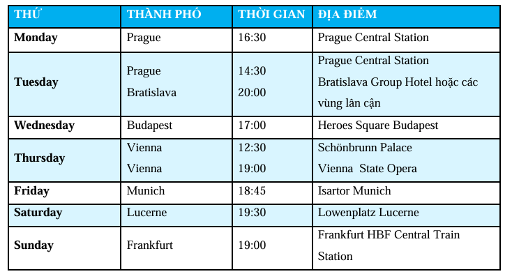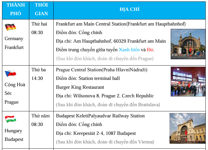 KHỞI HÀNH : Thứ Hai hàng tuần tại Frankfurt – Đức