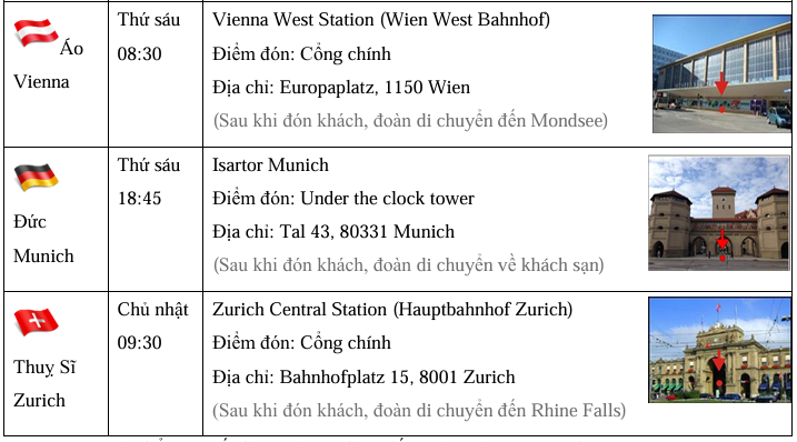 Du khách có thể lựa chọn nơi xuất phát ở bất kỳ điểm đón khách nào được liệt kê trong bảng sau: