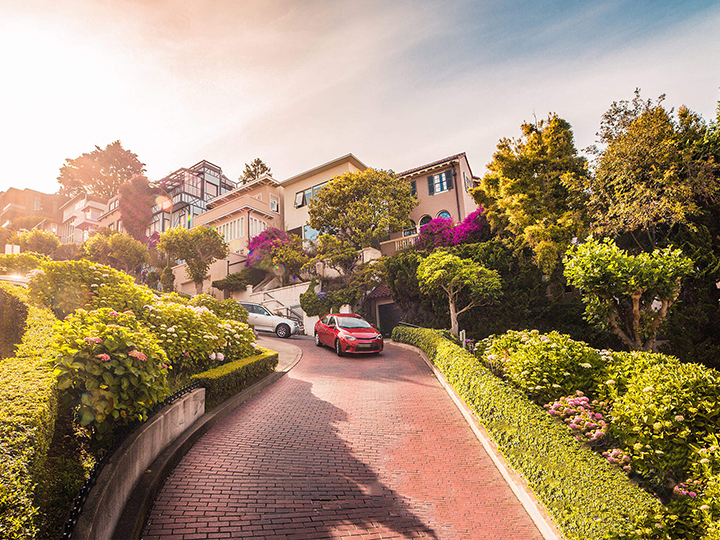 - Phố Lombard: Được biết đến với cái tên “Con phố quanh co nhất thế giới”, Phố Lombard là một trong những địa danh nổi tiếng nhất của San Francisco. Được bao quanh bởi những ngôi biệt thự Russian Hill và cảnh quan được cắt tỉa hoàn hảo cùng những bông hoa, đây cũng là một trong những con phố đẹp nhất của thành phố. Chụp một bức ảnh ngoạn mục ở phía dưới nhìn lên hoặc tận hưởng quang cảnh ngoạn mục từ trên cao nhìn ra Vịnh San Francisco, Cầu Vịnh và Tháp Coit.