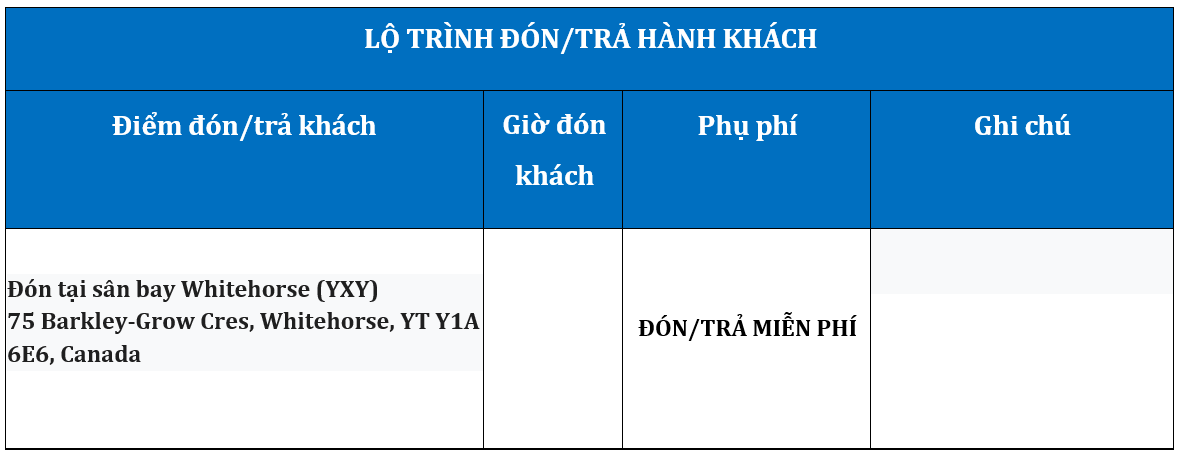 NGÀY 01: KHỞI HÀNH ĐẾN WHITEHORSE