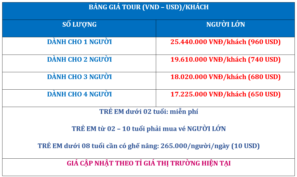 4.902.500 VND/KHÁCH HOẶC 4.138.244 VND/KHÁCH