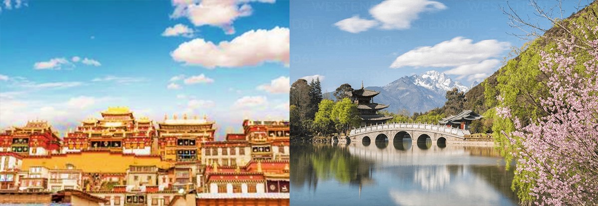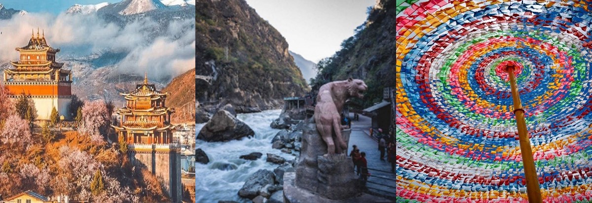 - Chùa Songzanlin (Tùng Tán Lâm Tự): hình ảnh thu nhỏ của Cung điện Potala (Tây Tạng) nằm trên độ cao 3200m.Nổi bật với những mái nhọn vàng rực rỡ là một ngôi đền lớn nhất Vân Nam, nơi tập trung những nét văn hóa tiêu biểu của người Tạng, được xây dựng từ năm 1679 bởi vị Lạt ma thứ 5, hiện vẫn được bảo tồn nguyên vẹn.
