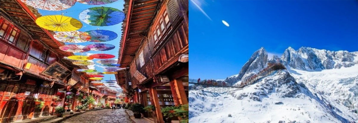 - Núi Tuyết Ngọc Long cách trung tâm phố cổ Lệ Giang về phía Bắc, quanh năm tuyết phủ trắng bao phủ một khu vực rộng lớn giống như con rồng lớn nên được gọi là “Ngọc Long”. Nơi đây còn được so sánh với “Thụy Sĩ Á Đông” như rặng Pyrenes (ngọn núi nổi tiếng tại biên giới Pháp và Thụy Sỹ). Đoàn đi cáp treo lớn lên núi với độ cao 4600m và chụp ảnh lưu niệm.