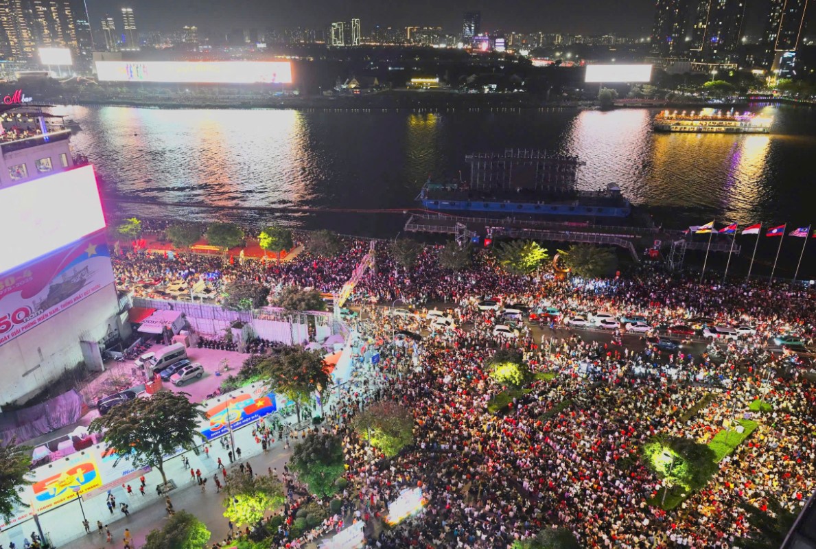 Vị trí xem đẹp nhất: Bến Bạch Đằng (quận 1) và công viên bờ sông Thủ Thiêm (TP. Thủ Đức)