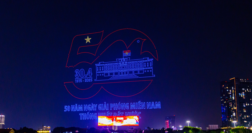 Tối ngày 28/4/2025, bầu trời TP.HCM rực rỡ với màn trình diễn tổng duyệt 10.500 drone trên sông Sài Gòn, một sự kiện thuộc chuỗi lễ hội “Sắc màu thành phố Bác” chào mừng 50 năm Ngày Giải phóng miền Nam, thống nhất đất nước (30/4/1975 – 30/4/2025). Đây không chỉ là một buổi trình diễn công nghệ đỉnh cao mà còn là một tác phẩm nghệ thuật tái hiện lịch sử hào hùng của dân tộc Việt Nam, khiến người dân và du khách không khỏi trầm trồ.