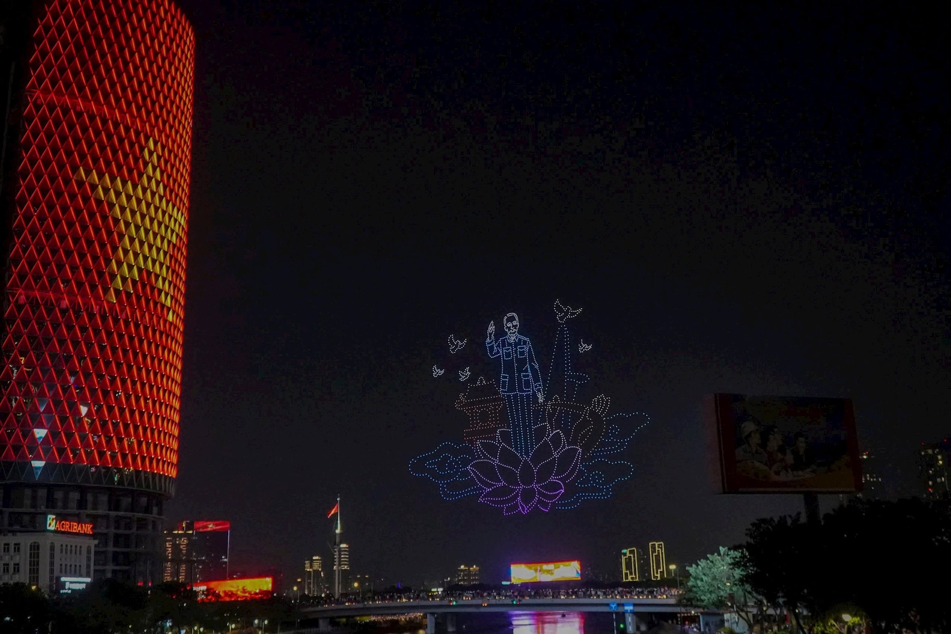 Màn trình diễn sử dụng 10.500 thiết bị bay không người lái (drone), được lập trình tinh vi để tạo nên những hình ảnh sống động trên bầu trời đêm. Các hình ảnh biểu tượng như xe tăng húc đổ cổng Dinh Độc Lập, lá cờ giải phóng tung bay, và hình ảnh Chủ tịch Hồ Chí Minh đã được tái hiện một cách chân thực, mang đến thông điệp sâu sắc về tinh thần yêu nước và khát vọng tự do.
