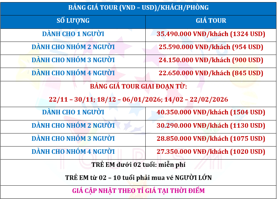 GIÁ TOUR KHÔNG BAO GỒM: