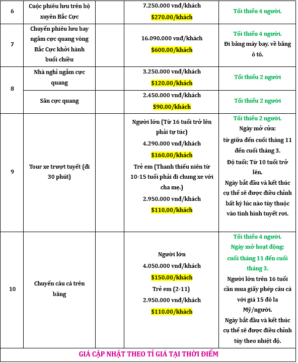 Chuyến đi Vòng Bắc Cực: $25/khách/ngày