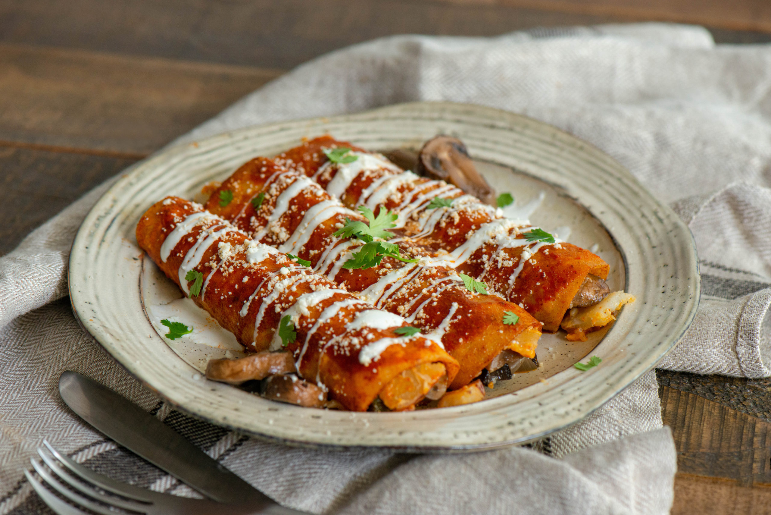 Món Mexico Enchiladas là một món ăn truyền thống của Mexico, nhưng cũng được yêu thích rộng rãi ở Mỹ. Món này gồm một chiếc bánh ngô cuộn quanh nhân thịt, phô mai, đậu hoặc rau và được phủ bởi một loại sốt cay hoặc ngọt.