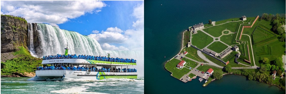 - (a) Maid of the Mist đi vào lòng thác Niaraga: Để chiêm ngưỡng sự hùng vĩ của thác Niagara, Quý khách có thể trải nghiệm trên chuyến tham quan bằng thuyền đến Thác nước, đưa bạn đến gần thác Niagara nhất có thể, chiêm ngưỡng hình ảnh của thác Niagara theo cách hoàn hảo nhất.