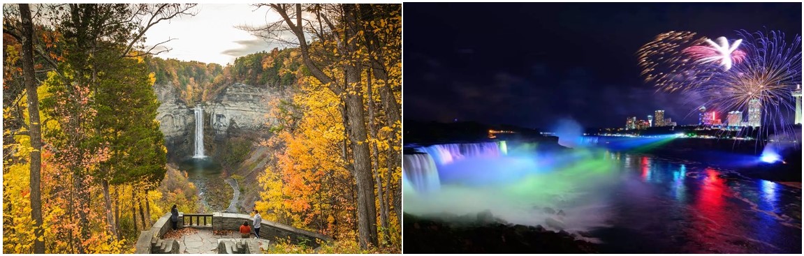 - Tour đêm thác Niagara: Quý khách sẽ tận hưởng một số cảnh quan đầy cảm hứng và trải nghiệm đầy phiêu lưu trong chuyến tham quan đêm tại thác Niagara. Thác Niagara là hệ thống ba thác và là công viên tiểu bang lâu đời nhất ở Hoa Kỳ (Quý khách sẽ có cơ hội tận hưởng màn trình diễn pháo hoa đặc sắc tại thác – trừ những ngày không có pháo hoa)