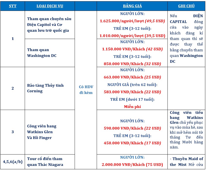 - Lệ phí visa Mỹ: 6.000.000 VND/KHÁCH.