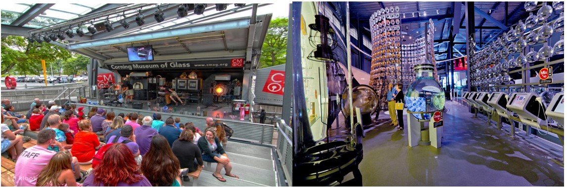 - Bảo tàng Thuỷ tinh Corning – đây là một bảo tàng nghệ thuật tuyệt đẹp là nơi trưng bày những tác phẩm thủy tinh có giá trị hơn 3.500 năm để bạn khám phá từ Châu Á, Châu Âu, Châu Mỹ.