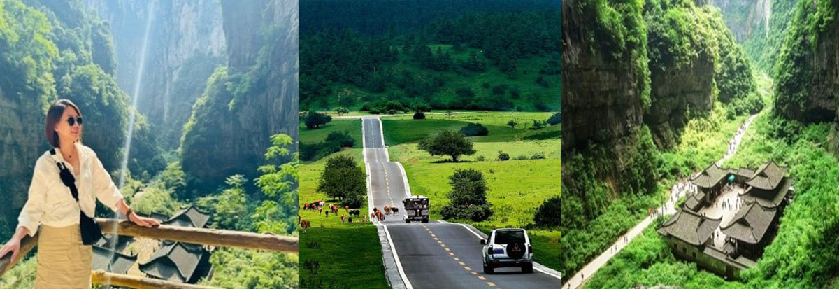 - "Thiên Sinh Tam Kiều” – kì quan địa chất hiếm có và ấn tượng với ba cây cầu đá vôi tự nhiên được đặt tên theo 3 loài rồng cổ của Trung Quốc: cầu Thiên Long, cầu Thanh Long và cầu Hắc Long, trong đó cây cầu hùng vĩ nhất mang tên "Thiên Long Kiều" cao 235m, bắc ngang qua thung lũng của quần thể núi đá vôi ở công viên địa chất Vũ Long. (đã bao gồm xe đưa đón, xe điện di chuyển).