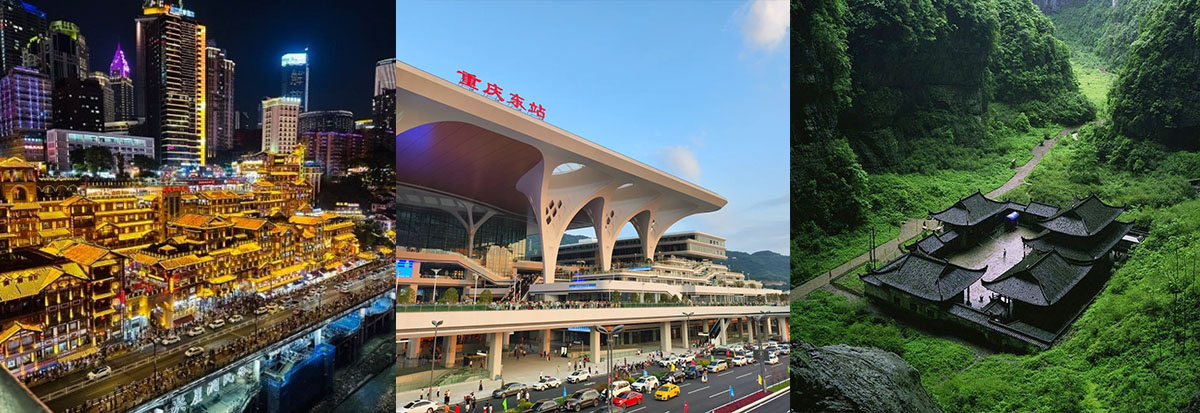 - Trạm tàu cao tốc lớn nhất Thế Giới - Trạm tàu Đông Trùng Khánh - nhà ga tàu cao tốc lớn nhất thế giới với diện tích hơn 600.000m², kiến trúc mái vòm hiện đại, kết nối nhanh chóng tới Bắc Kinh, Thượng Hải, Quảng Châu và hàng trăm điểm đến khắp Trung Quốc. (trải nghiệm chuyến tàu đường sắt đến ga tàu Nhà Hát Lớn đường Nanping).