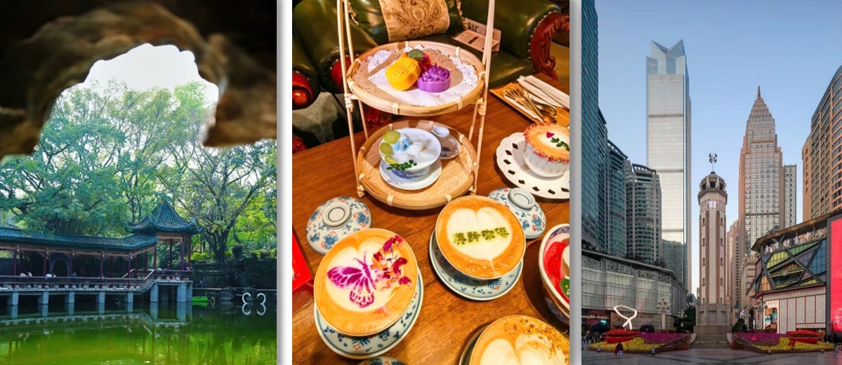 - Công viên Nga Lĩnh & thưởng thức cà phê - trà chiều tại Biệt Phủ Mỹ Linh: một góc Giang Nam giữa lòng Trùng Khánh, yên bình với đình đài cổ kính, suối nước trong veo, khung cảnh thơ mộng như tranh vẽ, tận hưởng không khí trong lành và chụp những bức ảnh đẹp như phim cổ trang.