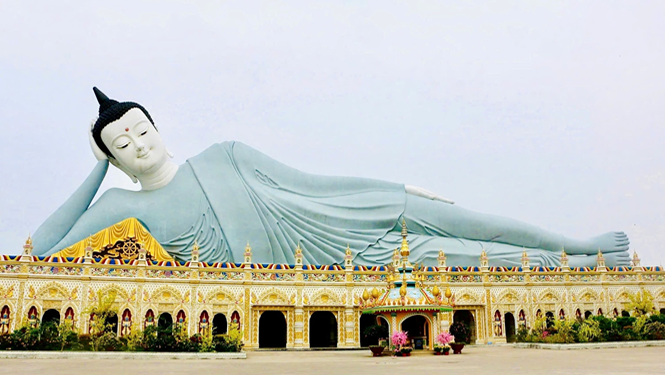 - Xe đưa đoàn khởi hành về Sóc Trăng, tham quan Chùa Som Rông – ngôi chùa có kiến trúc độc đáo với tượng Phật Thích Ca nhập Niết Bàn khổng lồ dài 63m, một trong những điểm check-in nổi tiếng của du khách.
