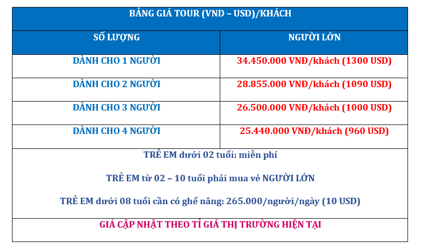- Quý khách mang quốc tịch nước ngoài hoặc là Việt Kiều phải có visa rời mang theo lúc đi tour.