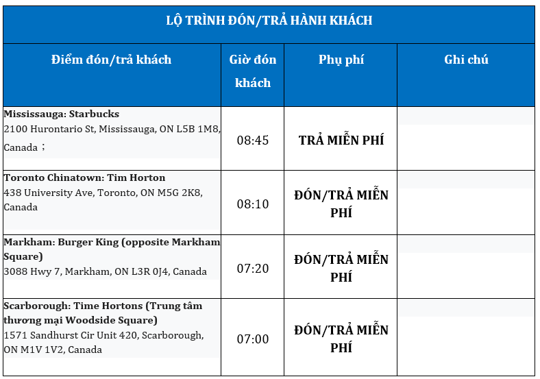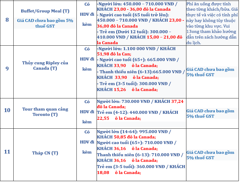 1. Nếu chuyến du thuyền Toronto Cruise đóng cửa, điểm tham quan sẽ được thay thế bằng Thủy cung Ripley's ở Toronto (chi phí tự túc, 60 phút).